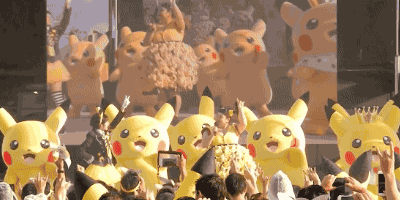还记得之前曾风靡过一段时间的皮卡丘吗?渡边站在中间,好像更萌了一点。