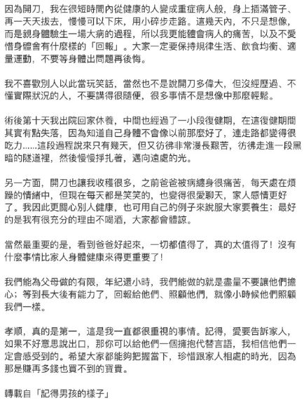 等到他再出来的时候,已是2016年,按时间推算,这中间空的一年,应该就是他为父亲捐肝的时间