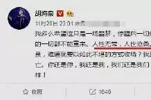 这条微博发布不久,胡海泉在深夜紧接着又发了一条。跟上一条难以遏制的愤怒情绪不同,这次的再发声是胡海泉经过冷静思考以后的许多感悟。胡海泉为陈羽凡吸毒的事情感到惋惜,并表示不甘心20年的羽泉就这样不堪收场!微博中的8个字:“人性无常,人世沧桑”,道尽万千,另歌迷泪奔:多么痛的领悟