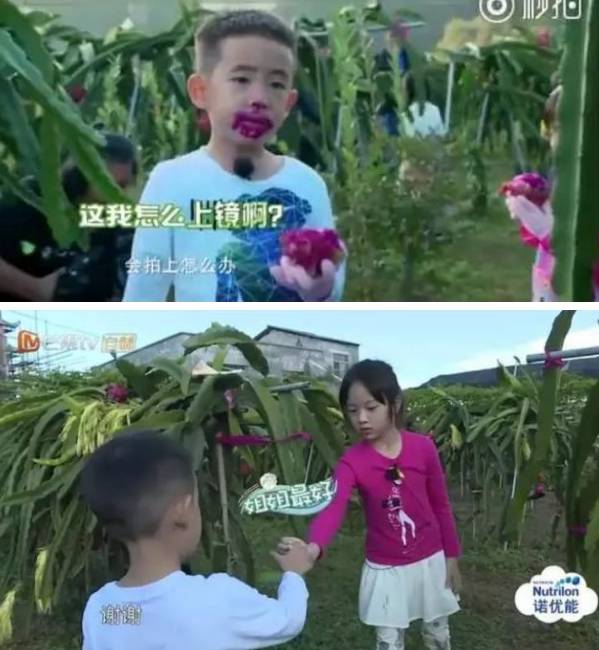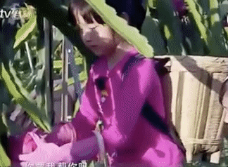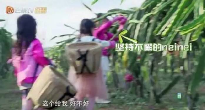 和小伙伴们摘火龙果的时候,neinei的“姐姐责任感”被彻底激发。