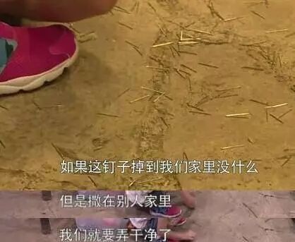 钉子撒了满地,大家让neinei不要碰,怕扎到她的手。