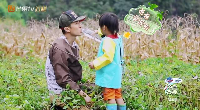 “八卦一姐”neinei在《爸爸去哪儿》里,简直是一台行走的爱心发射机。