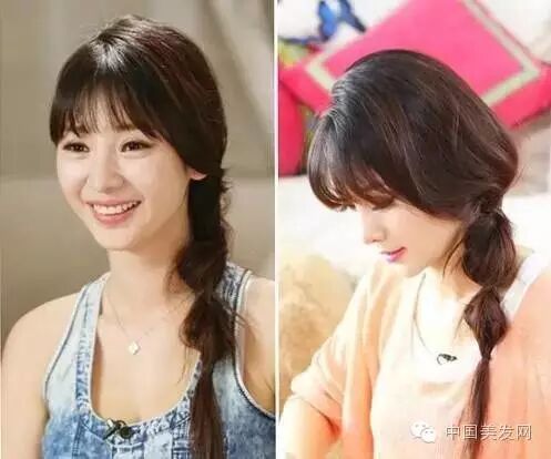 丸子头齐刘海,配上美美的小发饰,看起来更加精致了。