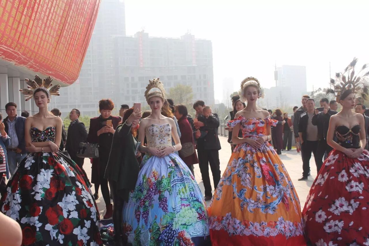 外籍模特与华服姑娘立于会展中心门道两旁,或婉约或奔放,或回眸一笑或眼潋春光,美好的事物总是让人留恋回望,况乎这些曼妙的姑娘,足以令人相思断肠。