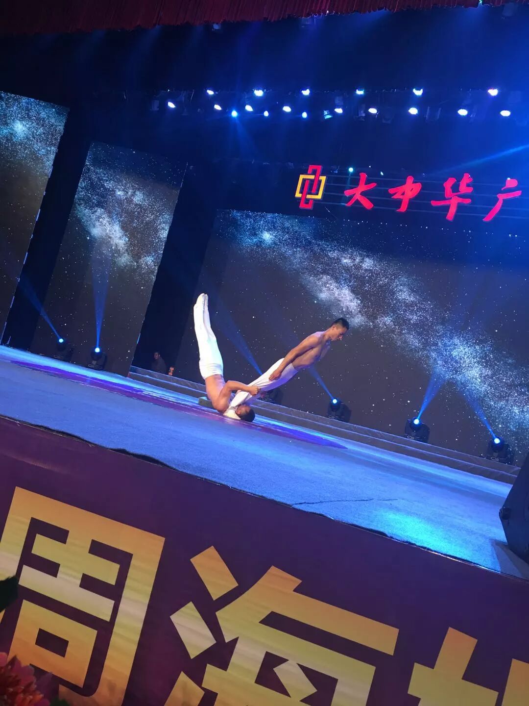 《力量组合》表演show,两位身材匀称眉清目秀的男子在台上尽力舒展身躯,恰到好处的翻腾空接,妙到巅峰的平衡之美,健硕的身姿完美的杂艺让现场沸腾不已,源源不断的掌声经久不息。