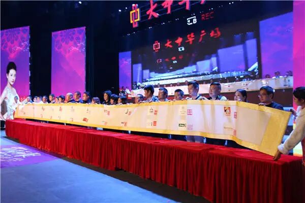 大中华黄总黄斌先生与合作盟友们一齐烙下诚信掌纹,各界精英们在镭光灯的映射下手联手心连心,合作共赢的经营理念由我们在场2000余名观众共同见证。