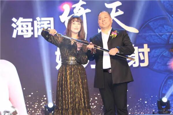 节目最后,由我们大中华黄总尽地主之谊展示蕲春地主之利,将“蕲艾精油”赠予我们的周海媚女神,女神也回赠“倚天神剑”以示大中华广场锐不可当无往不利。