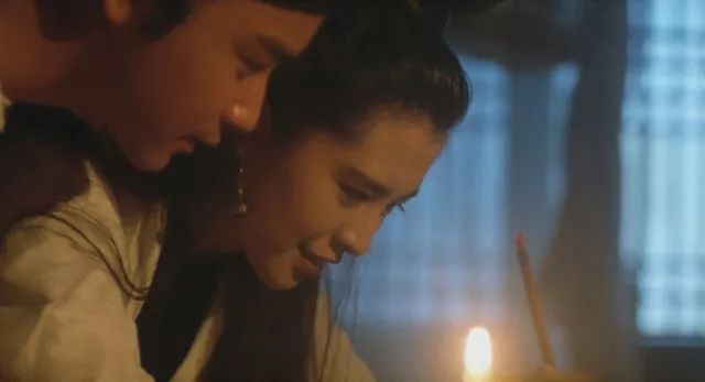 而窗内却是一片祥和宁静,宁采臣与聂小倩,共同执笔,在小倩的画像上一字一句写下诗篇,在眼神交汇间,彼此眼中满是幸福。