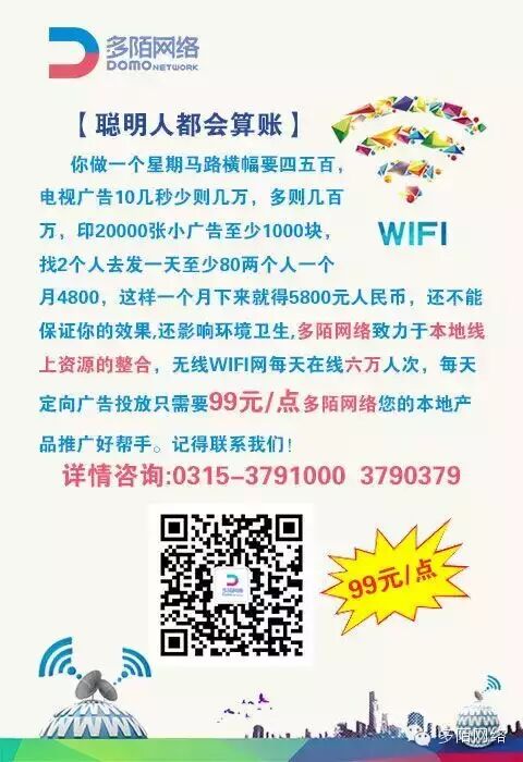 多陌网络是唐山市无极限通讯科技开发有限公司独立运营品牌。唐山市无极限通讯科技开发有限公司成立于2015年,注册资金一千万,以移动互联与大数据、云计算为主营业务,专注于商业Wi-Fi覆盖和大数据互联网。