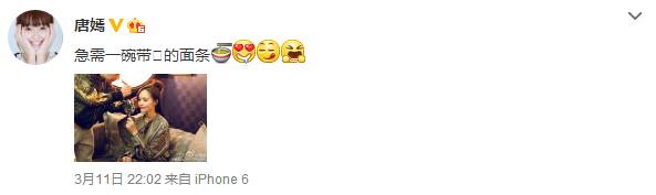 腾讯娱乐讯 昨日(3月12日)晚,唐嫣晒出一张正在化妆的美照,她身穿帅气的外套,妆容精致又可爱。美美哒的唐嫣,心里却只想吃一碗带辣椒的面条。