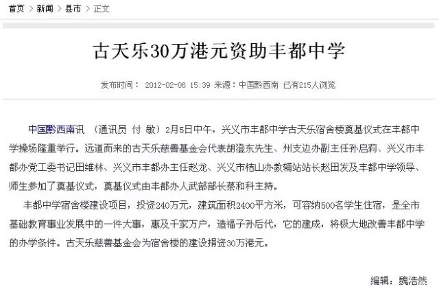 在广西、云南、贵州等地出资千万建造的60余所小学