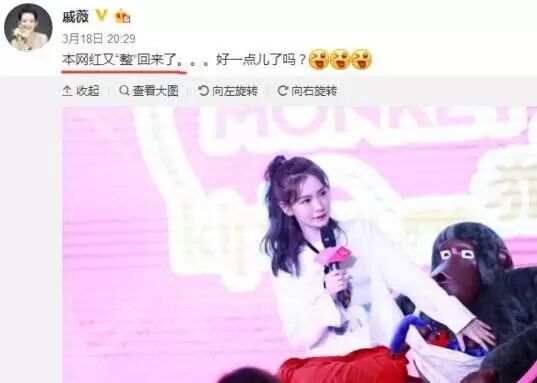 戚薇:不会,网络是大方向,不论你在哪里红,只要能红起来,都有一定的本事在,而且网红妹子挺美的,我很喜欢,所以对于网红这件事情,还觉得挺可爱的。