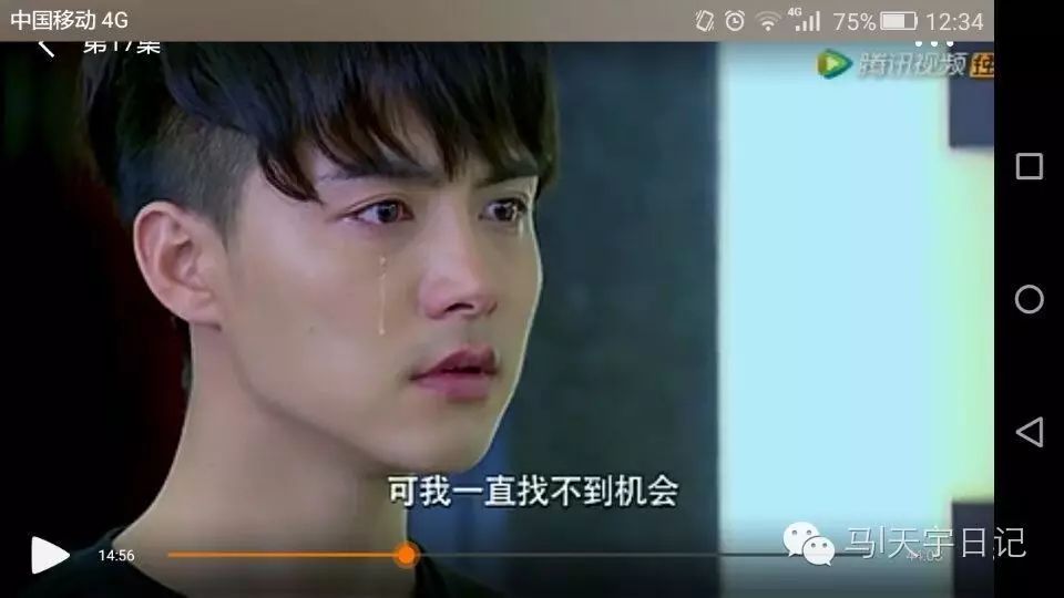 都说戏子无情,流泪亦无心。但是,每一次流泪都是真实的心灵反应。马天宇,你有非同一般的人生经历,也有超过实际年龄的心灵积淀。因此,你能把每一个角色哭戏的尺度把握的很好,让人心疼,却不会哭的一个男人哭是懦弱。