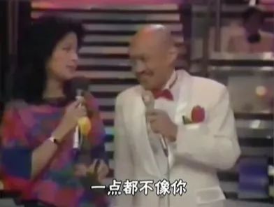 在舞台上,当面调侃旁边的主持人:“你小儿子真可爱,一点都不像你。”
