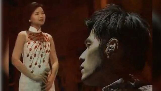 在一次晚会上,她忘记《甜蜜蜜》的歌词,便满脸问号地看向旁边的主持人,试图“求助”。