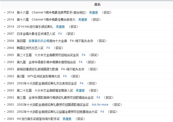 观察吴建豪的个人奖项,音乐获奖数目也是远远超于影视作品。
