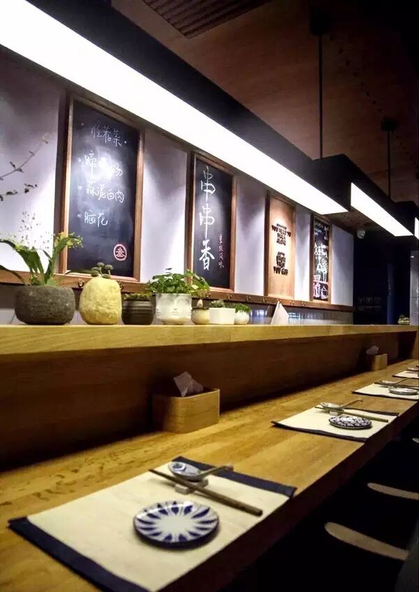 各色盆栽引入了自然的韵味,黑板墙则突出美感,让一个小小的串串店也显得高端大气上档次。