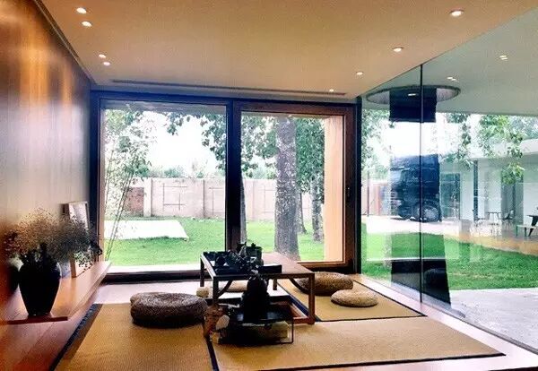 工作室里还设计了一个开放式的茶室,落地窗的设计,让整个空间有更多延伸的空间,无论从色调还是材质上都让人体验着安静、静心的感觉