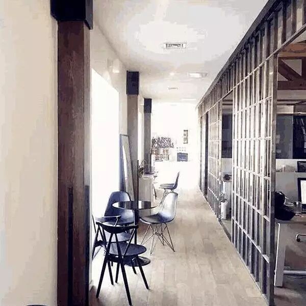 在改造这一空间时,他们用木木材料代替原来的水泥元素,木质材料的大量应用让人无论从视觉还是从触觉上都有更舒适的体验,让原本冷冰的走廊也变成舒适悠闲的场所。