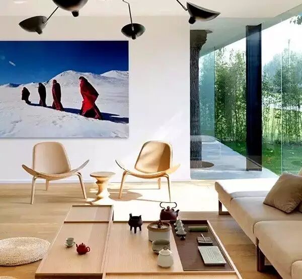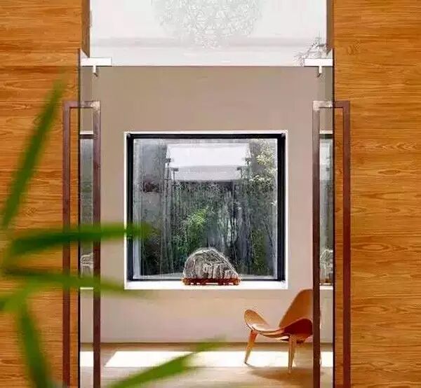 利用大幅透明的玻璃门,最大限度的接受自然光照,一扫之前幽暗的面貌,门后没有被物体所遮挡,而是一扇小窗,露出了后面翠绿的竹林,空间层间更强,更具禅意效果。