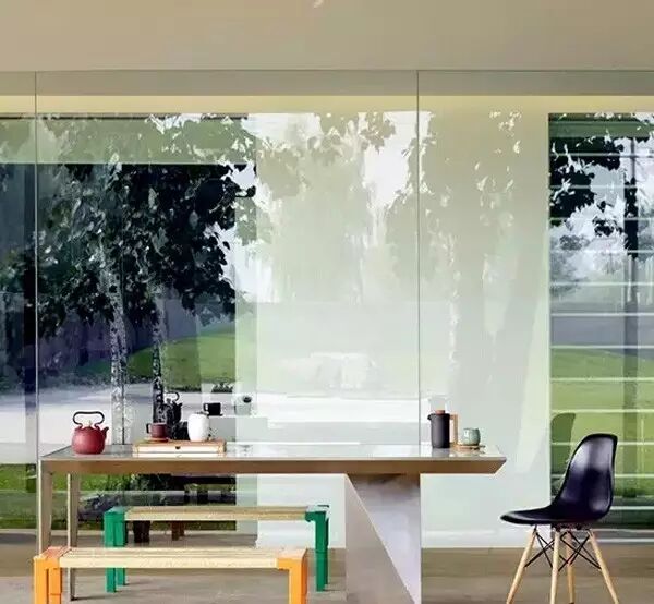 大面积的玻璃窗设计,让室内可以接受到更多的自然光线,明亮通透的空间,透明的玻璃窗,室外的美明媚风景一览无遗,充满了诗意的画面。