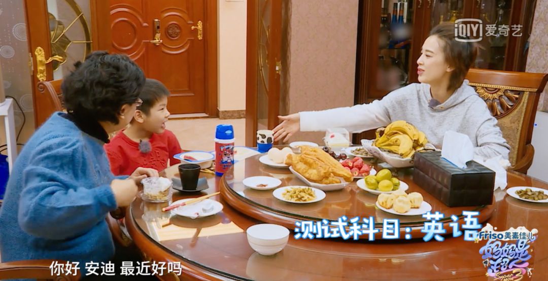 饭桌上,姥姥用英语问安迪:“Would you introduce yourself?”你能介绍一下你自己吗?当安迪光顾着吃饭还来不及回答时,姥姥紧接着用英语告诉安迪:“You can say what’s your name.”“How old are you?”(你可以说你叫什么名字,你今年多大了?)