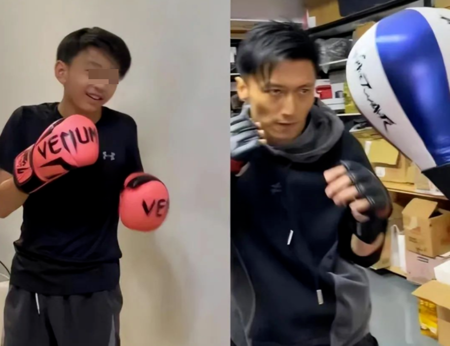 最近张柏芝分享了一段他在家里练拳击的照片,简直和谢霆锋一个模子刻出来的。