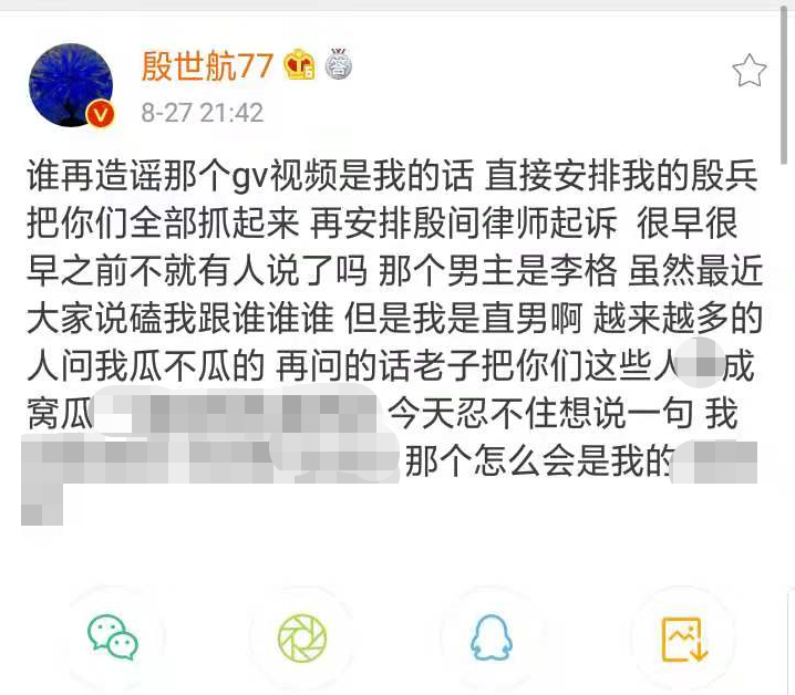 昨天殷世航忽然破防,说连自己妈妈都问gv的主人是不是他,开始疯狂澄清。
