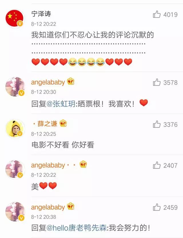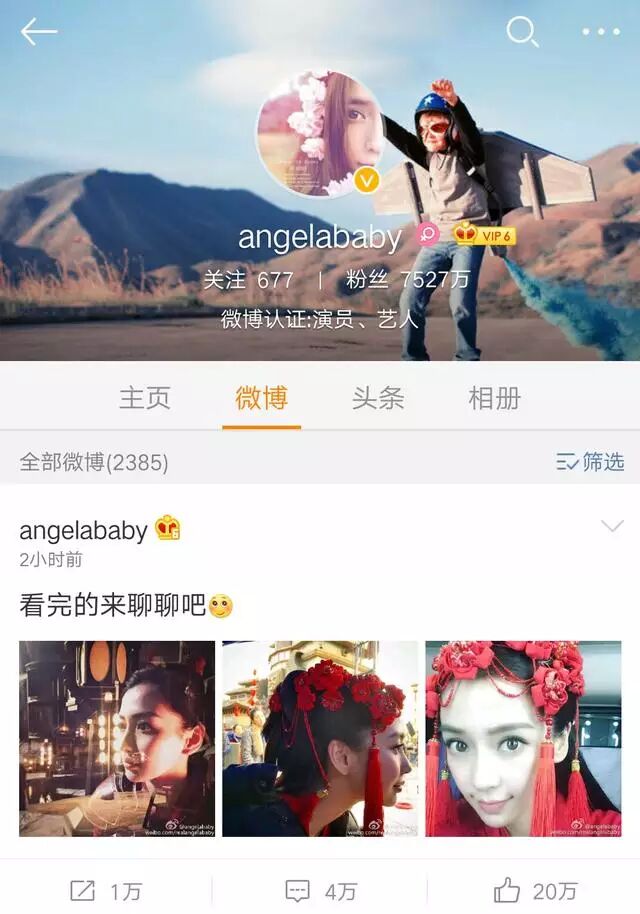 电影版《微微一笑很倾城》正在上映,作为女主角的Angelababy自然少不了发微博撩粉丝去看。
