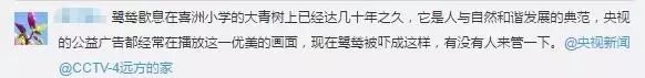 鹭鸶歇息在喜洲小学的大青树上已经达几十年之久,它是人与自然和谐发展的典范,央视的公益广告都经常在播放这一优美的画面,现在鹭鸶被吓成这样,有没有人来管一下。”