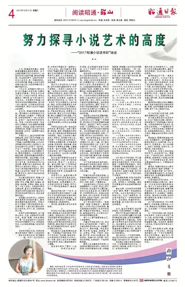 为小说作者们办读书班,在昭通作家群的历史上是第一次。
