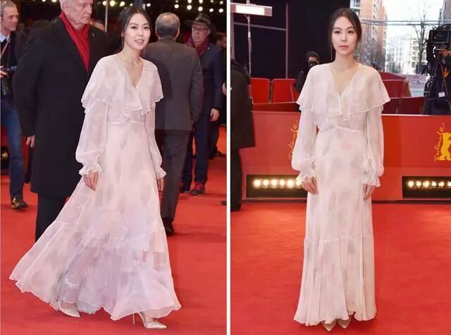 而且可能是曾经当过模特的原因,她的衣品也非常的好,红毯上的她总是会选择一些淡雅的连衣裙,粉嫩的颜色配上清单的妆容,让她看起来温婉雅致。