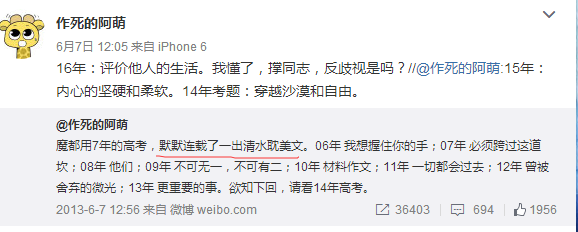 与春晚齐名的段子手狂欢节高考语文考试最近几天持续发酵,微博和朋友圈简直被各地高考作文刷爆了……