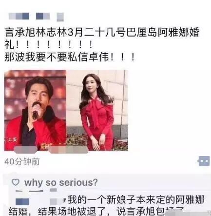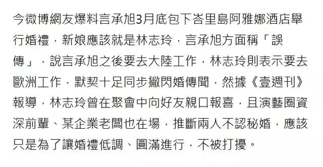 不过网友的截图时间地点都很明确,一副有理有据的样子,可惜双方都表示这是误传,言承旭之后要去大陆工作,林志玲则有海外工作邀约,总而言之,双方都证实了这是一场乌龙。
