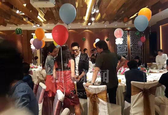 记者晚上6点40分乘车从地库进入生日宴会场,看见会场并不大,大约不到20桌。记者注意到走廊有气球装扮的拱门和太阳花,会场内挂满了气球。生日宴开始后,于冬和金巧巧携女儿“小西瓜”现身,一家三口其乐融融。