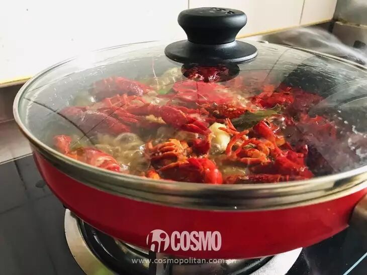 4.最后,将小龙虾放入,按照上面的食谱做法照做就okay啦!最后可以根据自己的口味加入盐调味。