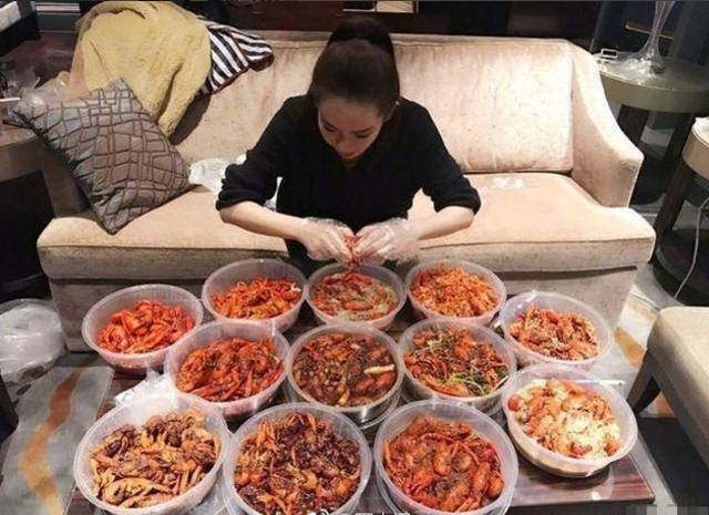 小龙虾到底有多火?看看明星们“嗜”虾如命的样子便是一目了然。戚薇绝对霸气,12盆小龙虾口味一应俱全,从麻辣到蒜香,吃相也是认真脸.jpg,莫非你要一个人独享这么多?