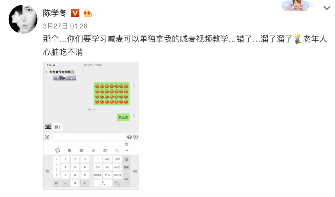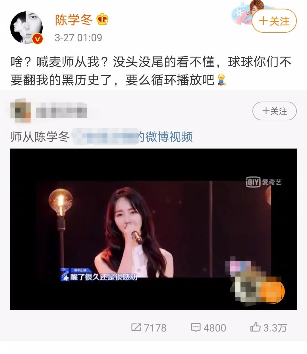 被网友各种喊话后,在线冲浪的陈学冬火速转发了视频,求大家不要再翻他的黑历史了。