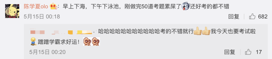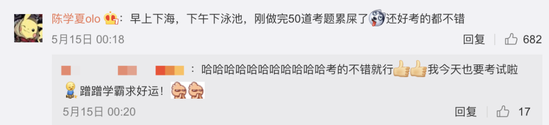 最终,努力的陈学冬给大家汇报了好消息,考的不错啦。