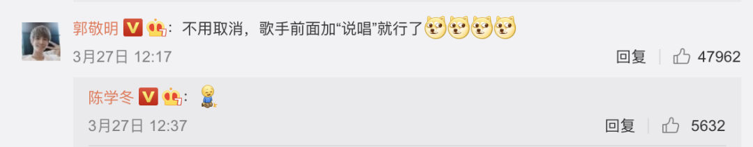 郭敬明还在评论区调侃,不用取消,前面加个“说唱”就行了。