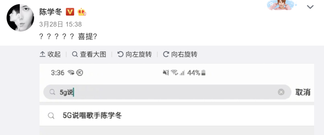 第二天,还是放心不下得陈学冬,悄咪咪在微博搜索关键词“5g说唱”,结果却发现自己喜提“5G说唱歌手”荣誉称号。