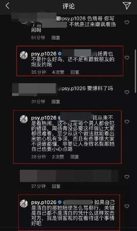 其中,疑似罗志祥好友色痞在回复网友时内涵了周扬青,还帮罗志祥开脱:
