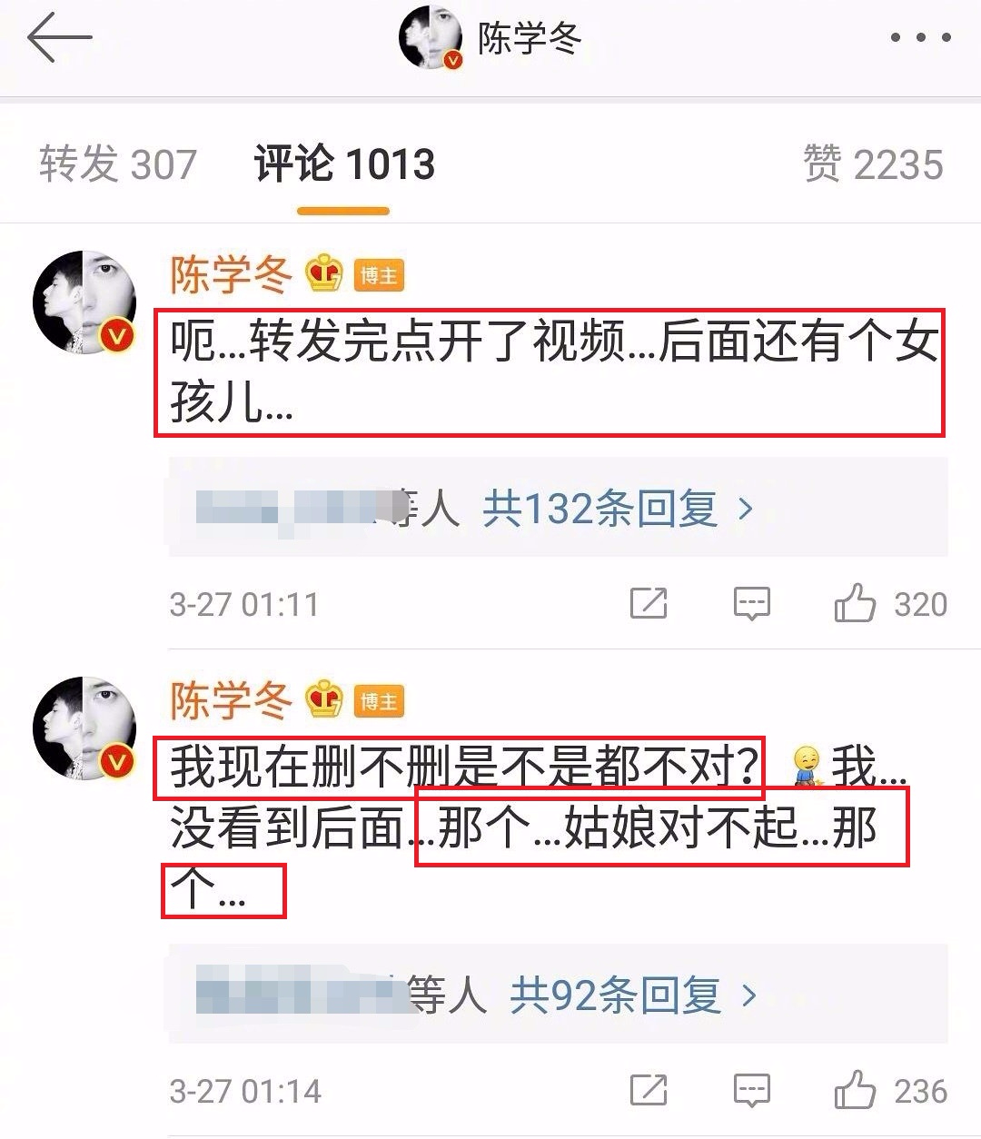 转发完才发现视频后面一部分是牛姐的陈学冬,瞬间就不知所措了。