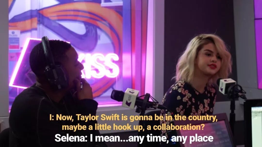 脸脸这张照片是在电台接受采访时拍的,当时她被问到会不会和霉霉合作,她说:"随时随地。"
