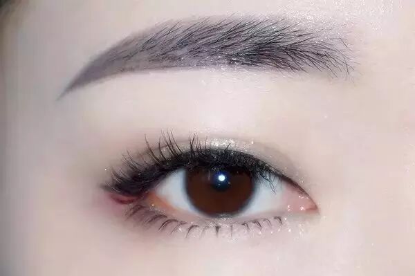 Step 2 将浅咖啡色眼影涂在眼窝出,范围较珍珠白眼影略小,并在下眼线至眼头起2/3处轻刷