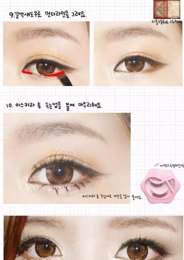 Step 10 贴上假睫毛,下睫毛用睫毛膏刷出束感,眼妆就完成咯