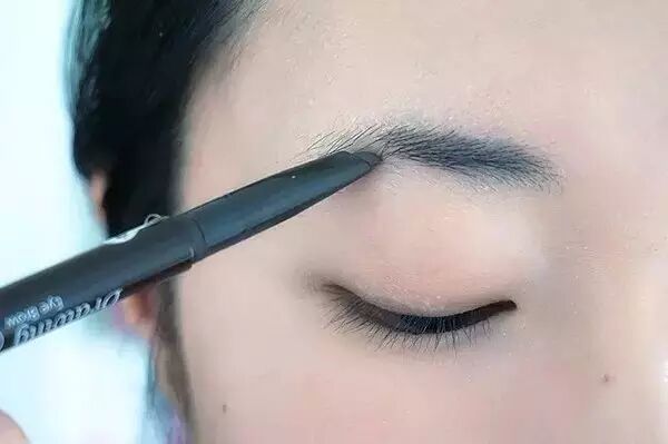Step 2 画眉毛用的是爱丽小屋眉笔打底,再用眉粉填充。Tiffany的眉毛偏粗一些,所以尽量画的平不要太锋利