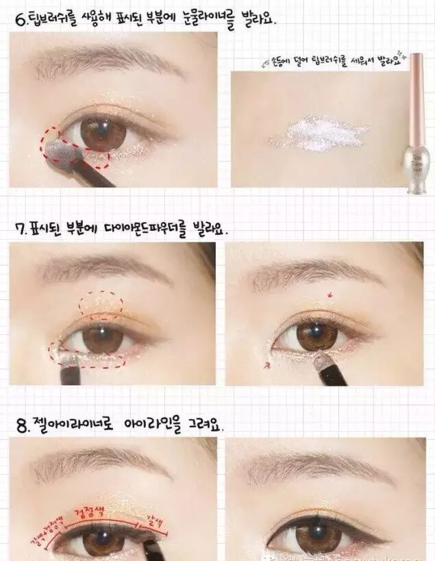 Step 8 用棕色眼线膏从眼头起由细至粗画出眼线,眼尾处拉长