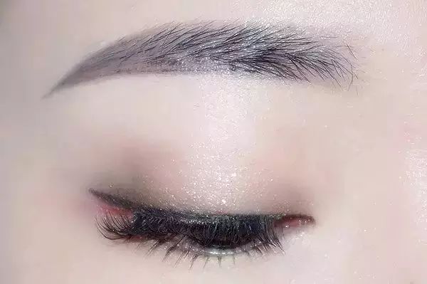 Step 6 接着用眼线刷蘸亮片深棕色,画眼尾。适当熏染,亮片的眼影比较容易飞粉,要少量多次叠加