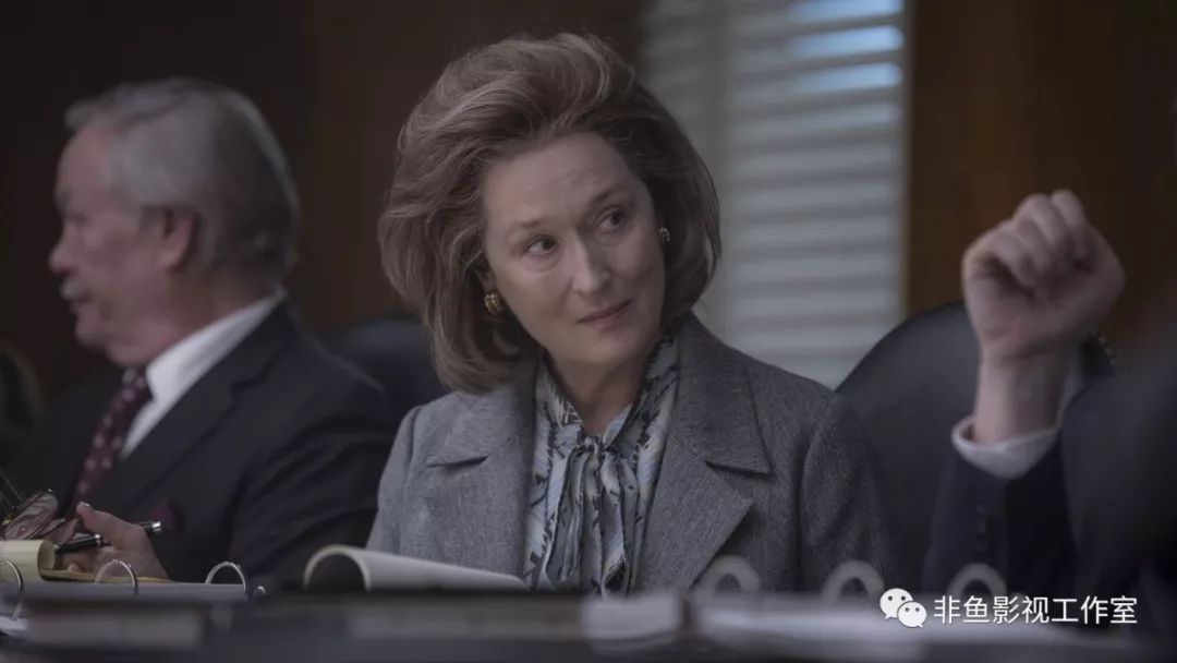 首先看故事。因为是真人真事,而且是人尽皆知的“历史故事”,所以在叙事上发挥的空间很少。但斯皮尔伯格还是牢牢把握住了影片的节奏——快速、流利,和当时紧张、焦虑但又信心百倍的气氛融为一体。五角大楼泄密事件牵涉到美国的政府机密,事关多位总统,并且直接跟政府的公信力以及华盛顿邮报的生死息息相关。要想把这个故事讲得惊心动魄还有新意,实属难事。斯皮尔伯格就是斯皮尔伯格,把电影叙事的主要动力放在了该不该报道政府机密上,主要人物是发行人凯瑟琳•格雷厄姆和总编辑本•布拉德利,他们两位和各方势力的较劲是故事的核心。